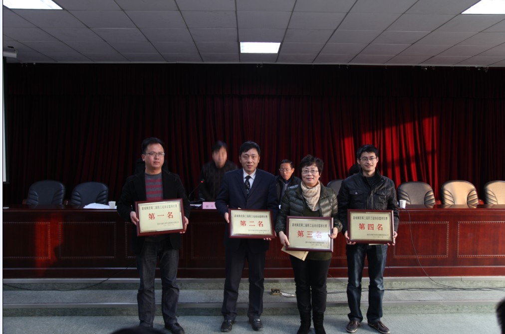 2012年12月5日下午,嘉城集團(tuán)第二屆職工運(yùn)動(dòng)會(huì)籃球比賽頒獎(jiǎng)儀式在嘉城集團(tuán)公司五樓會(huì)議室舉行。我所籃球隊(duì)隊(duì)員經(jīng)過(guò)頑強(qiáng)拼搏,最終獲得第四名。燃?xì)饧瘓F(tuán)籃球隊(duì)、沙龍賓館·月河客棧籃球隊(duì)和資產(chǎn)公司·拆遷公司籃球隊(duì)分獲第一、二、三名。