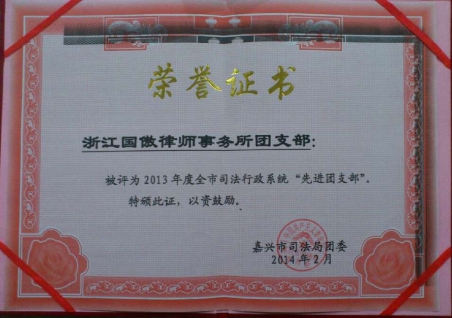 我所團支部被評為2013年度全市司法行政系統(tǒng)“先進團支部”。