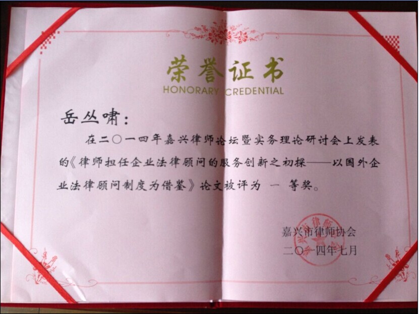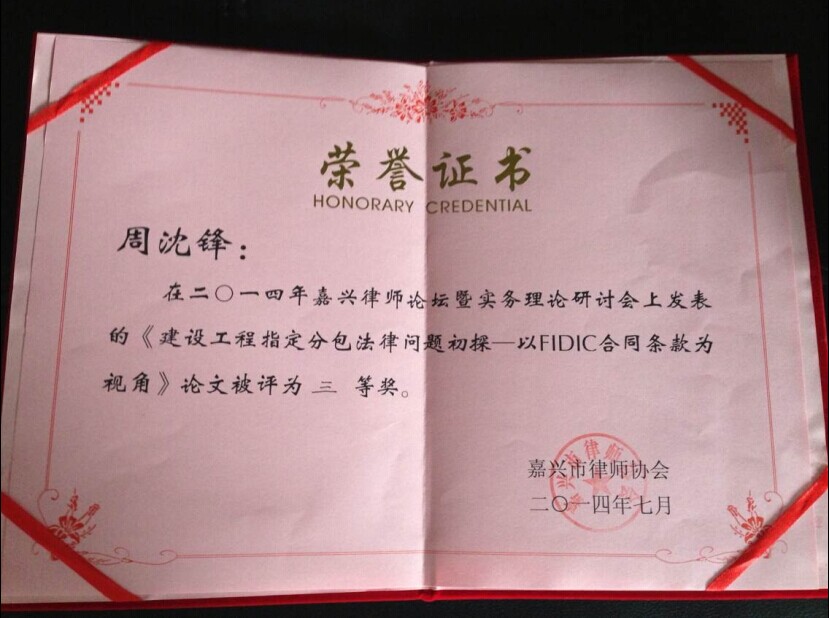 大會研討采取“作者演講——與會者提問和作者答辯——評委點(diǎn)評”的方式,經(jīng)專業(yè)評委和大眾評委民主投票,評委會評定,一等獎?wù)撐?/span>3篇,二等獎?wù)撐?/span>6篇和三等獎?wù)撐?/span>15篇。其中,我所岳叢嘯律師論文《律師擔(dān)任企業(yè)法律顧問的服務(wù)創(chuàng)新之初探——以國外企業(yè)法律顧問制度為借鑒》榮獲一等獎,馮美芳律師論文《律師擔(dān)任地方行政機(jī)關(guān)法律顧問的相關(guān)問題研究》榮獲二等獎,周沈鋒律師論文《建設(shè)工程指定分包法律問題初探——以FIDIC合同條款為視角》榮獲三等獎。