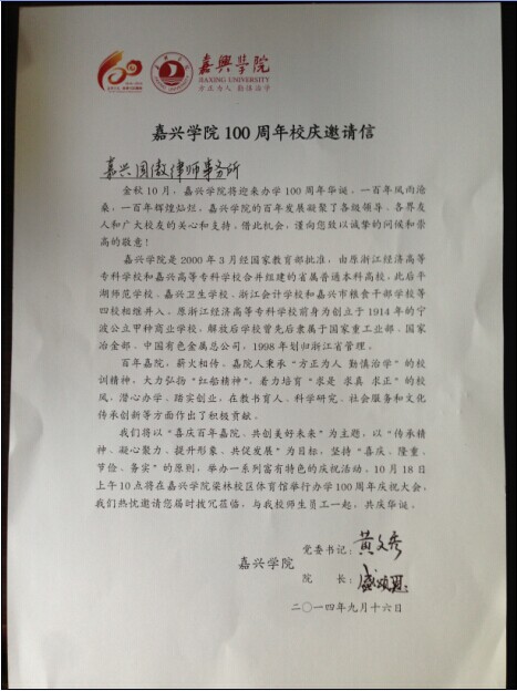 我所系嘉興學(xué)院教學(xué)實(shí)驗(yàn)基地,我所主任馬正良律師、副主任唐松華律師系嘉興學(xué)院法學(xué)專業(yè)兼職教授。