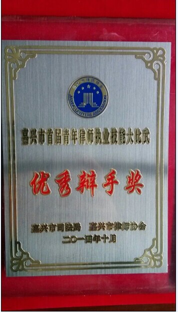 下圖為我所錢彬豪律師獲獎(jiǎng):