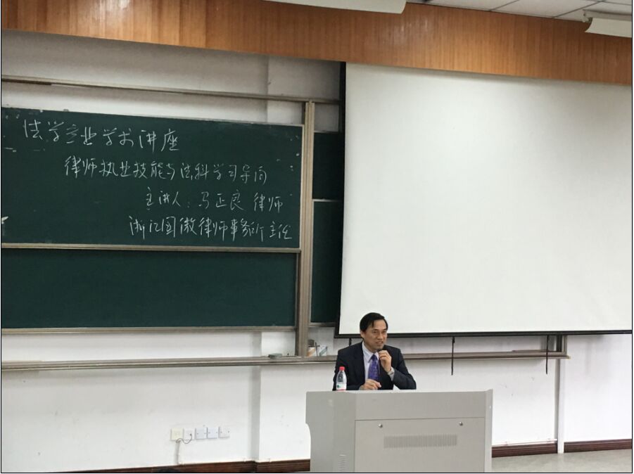 2016年4月7日,我所馬正良主任應(yīng)邀為嘉興學(xué)院文法學(xué)院學(xué)子作“律師執(zhí)業(yè)技能與法科學(xué)習(xí)導(dǎo)向”法學(xué)專業(yè)學(xué)術(shù)講座,馬主任系嘉興學(xué)院法學(xué)專業(yè)兼職教授。