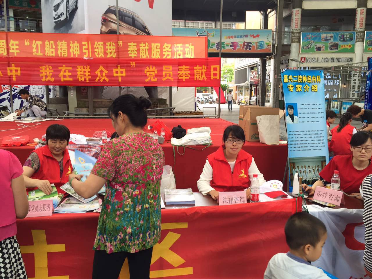 2016年6月27日上午,96345黨員志愿者總站、南湖區(qū)委宣傳部和96345社區(qū)服務(wù)求助中心在華庭街中庭廣場(chǎng)聯(lián)合開展紀(jì)念建黨95周年“紅船精神引領(lǐng)我”暨“黨在我心中 我在群眾中”為主題的“黨員奉獻(xiàn)日”志愿服務(wù)活動(dòng),現(xiàn)場(chǎng)為居民提供法律咨詢、醫(yī)療咨詢、理財(cái)咨詢等服務(wù)。