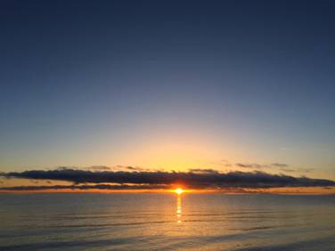 第二天早上,興致勃勃地看了本次旅行的第一場日出,親眼見了長河落日。那一輪紅日從湖面一躍而上,耀眼奪目,照得湖水波光粼粼。