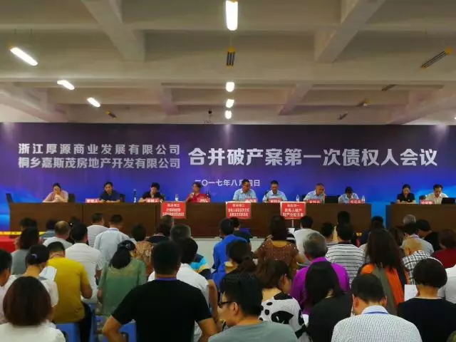 2017年8月4日上午在桐鄉(xiāng)技師學院召開了浙江厚源商業(yè)發(fā)展有限公司、桐鄉(xiāng)嘉斯茂房地產開發(fā)有限公司合并破產案第一次債權人會議,共有425個債權人前來參加了會議。我所馬正良、吳濤、范小群、邱圣杰等多名律師及實習律師組成工作團隊,在前期做了充分準備工作的基礎上分工合作、緊密配合,依事先安排的議程順利進行。