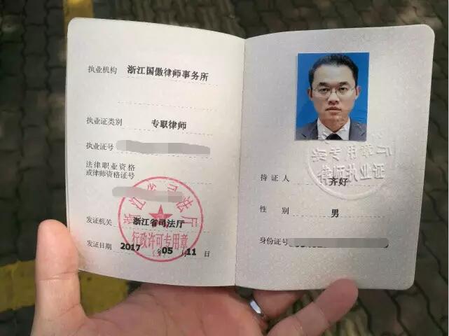 2017年5月中旬,我所實習律師齊好經(jīng)過一年的實習鍛煉,順利通過嘉興市律師協(xié)會規(guī)定的各項考核,最終通過執(zhí)業(yè)前面試,取得律師執(zhí)業(yè)證,成為一名真正意義的律師。