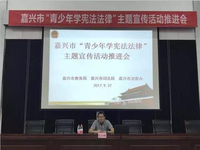2017年9月27日,嘉興市“青少年學(xué)憲法法律”主題宣傳活動(dòng)推進(jìn)會(huì)在嘉興市第四高級(jí)中學(xué)舉行,市委教育工委委員、市教育局副調(diào)研員李擁軍,市法宣辦副主任、市司法局副局長(zhǎng)蔡加龍 ,市法宣辦宣教處處長(zhǎng)凌靜芳,嘉興四高校長(zhǎng)周建中出席會(huì)議。我所合伙人岳叢嘯律師為嘉興四中220多名師生作《憲法》法治講座。